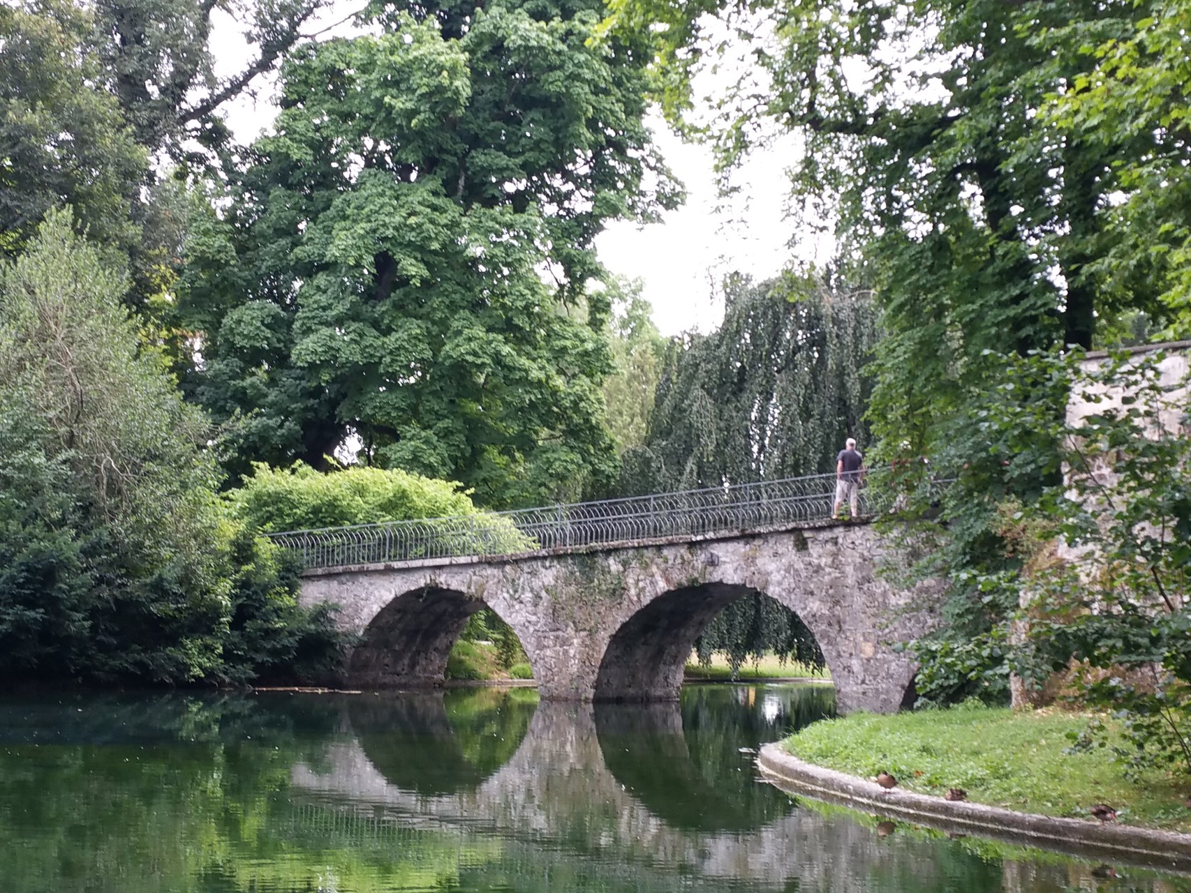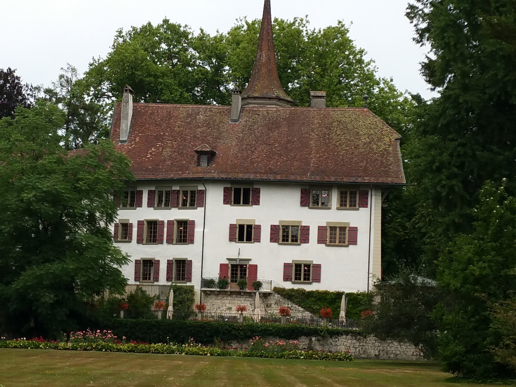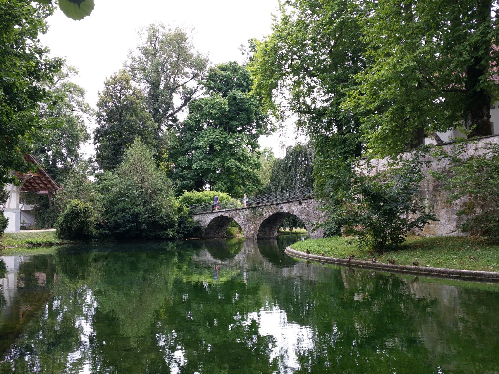 Was suchen Wanderfreunde in diesen heissen Tagen? Ja natürlich, schattige Wege entlang eines Flusses. Zuerst mal eine Fahrt nach Utzenstorf. Nun wollen wir uns für die Wanderung stärken, also Suche nach einer Gaststätte. Hinter einer mit Baugerüsten verkleideten Fassade finden wir den lauschigen Garten des Restaurant Bären. Hier lässt sich gut sein und das Essen schmeckt fein. Dann heisst es auf zur Emme! Auf schönen Wegen wandern wir also dem Fluss entlang. Schloss Landshut empfängt uns mit einem wunderschönen Park, durchzogen von Bachläufen und einem verträumten, kleinen Wasserfall. Im Schlosshof gibt es eine kleine Wirtschaft, wo wir vor uns hinträumen können von vergangenen Zeiten. Weiter geht es, zuerst - leider - auf einem sonnig heissen Strassenstück, bevor wir wieder zur Emme abzweigen können. Glücklich sind wir über die schattenspendenden Bäume und Sträucher, die uns bis fast zum Bahnhof Gerlafingen begleiten. Gemäss Wanderplaner kann diese Strecke in 2 Stunden bewältigt werden. Unsere Seniorengemeinschaft aus 2 Menschen und 2 Hunden nimmt sich die Zeit, unterwegs auch stehen zu bleiben, zu staunen und zu wundern und vor Allem sich an der schönen Natur zu erfreuen.