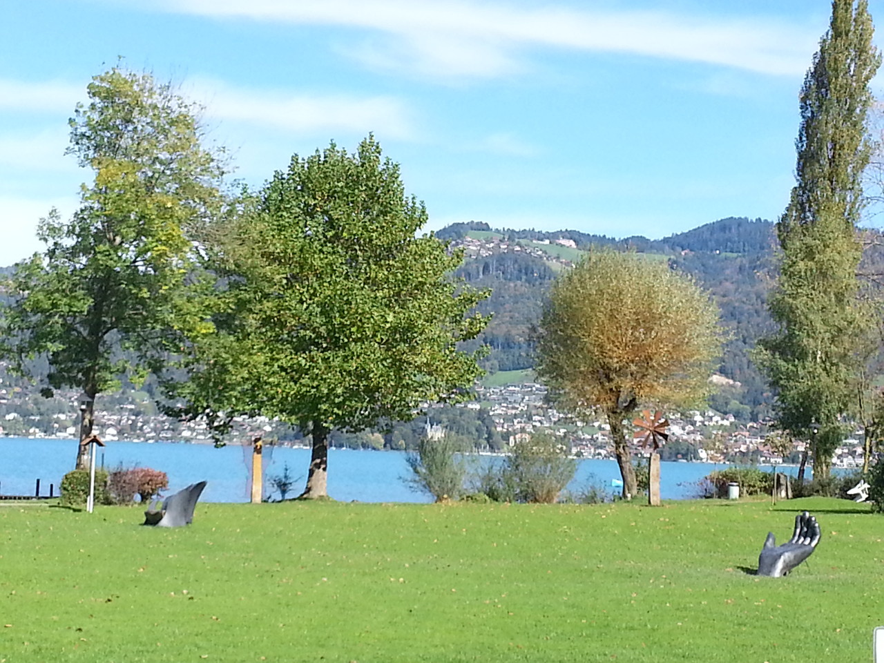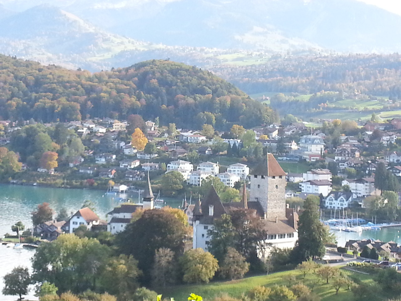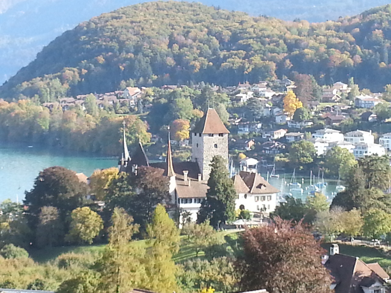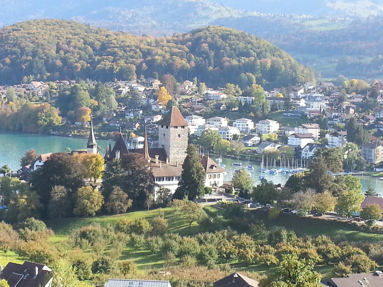 Von Hünibach aus geht es bergauf und dann dem Waldrand entlang nach Hilterfingen. Sofort suchen wir uns die Promenade, welche dem See entlang zurück Richtung Thun führt. Die Bilder zeugen von der Pracht dieses Herbsttages. Zu geniessen ist Park von Schloss Hünegg, den wir Heute fast für uns alleine beanspruchen dürfen. Das mächtige Schloss bestaunen wir von aussen.