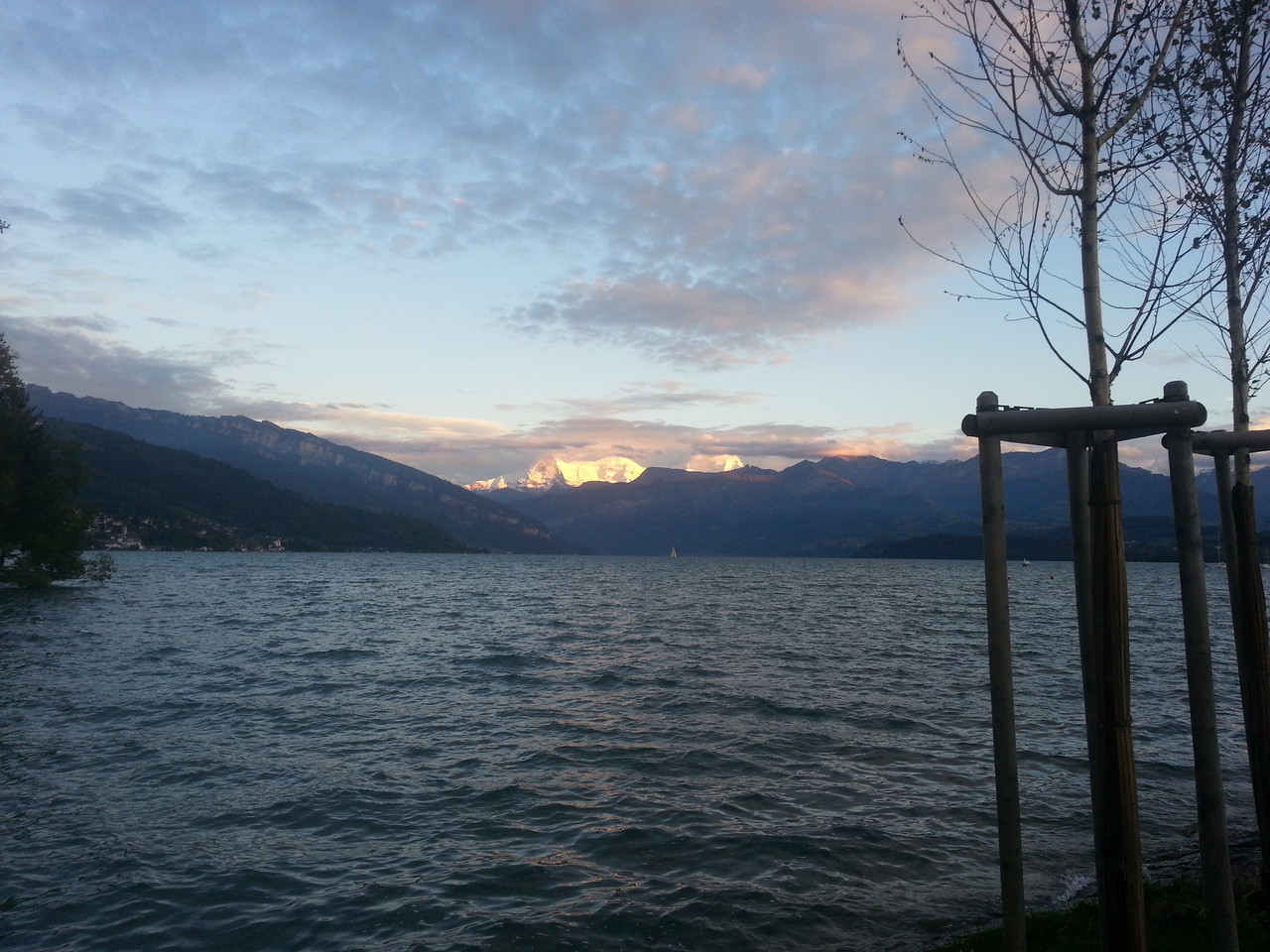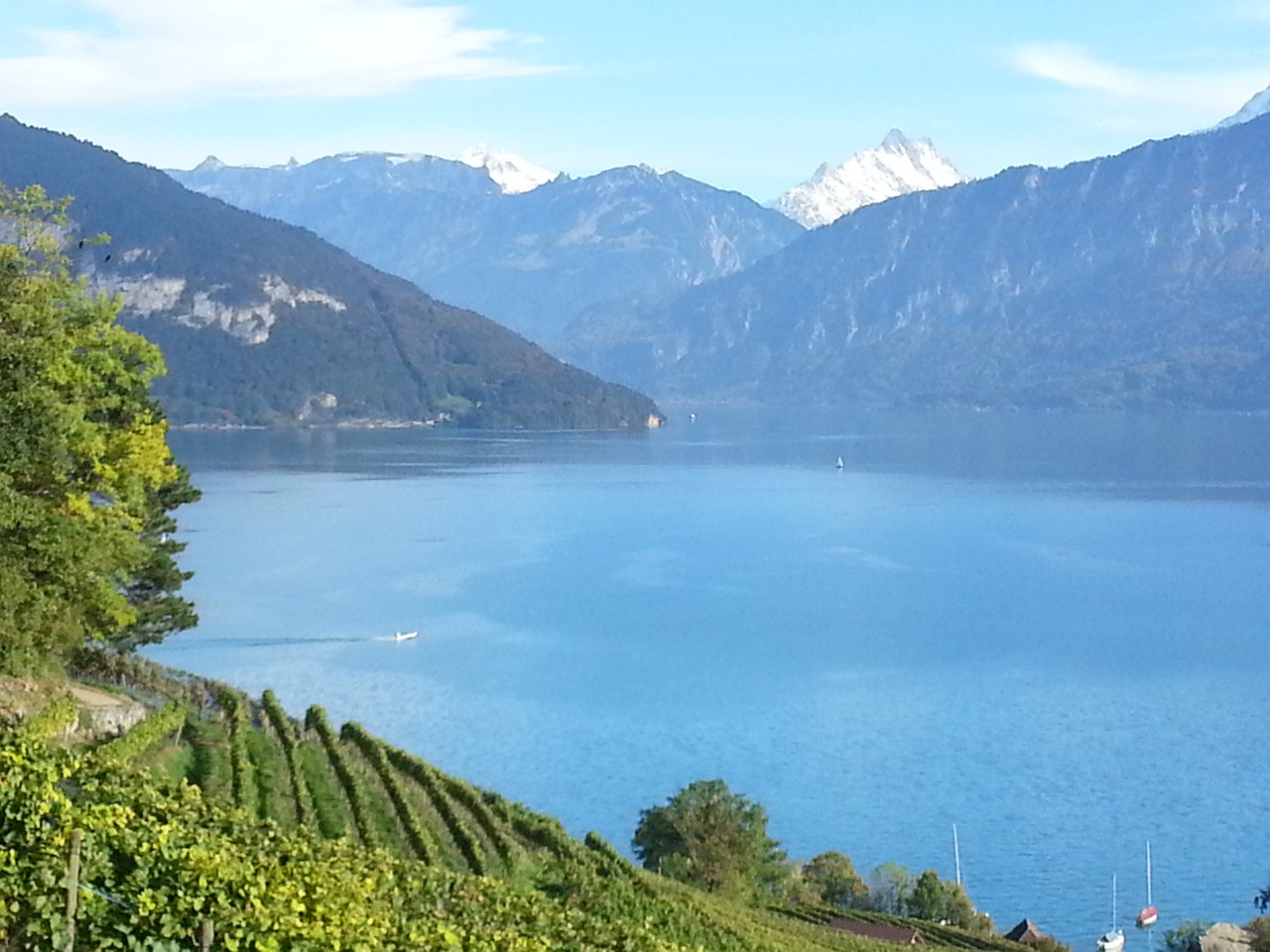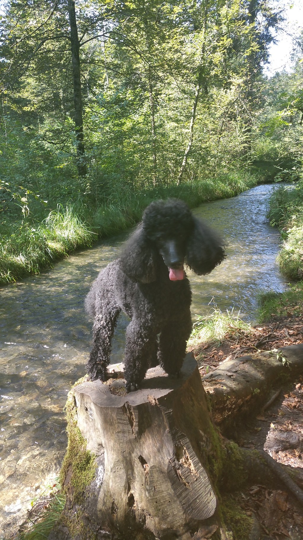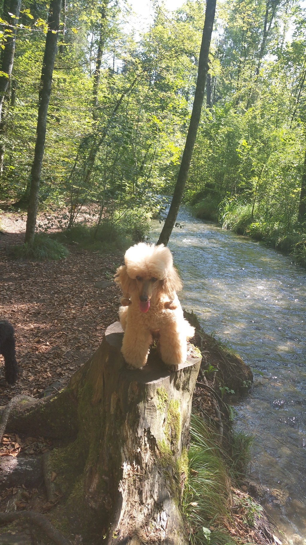 Wir waren bei der Tierärztin und haben ihren Rat eingeholt. Gefallen hat uns die Nachricht nicht, also haben wir noch Kontakt aufgenommen mit einer Tierkommunikatorin. Gabriella hat mit Monty gesprochen und er meinte, es sei nun wirklich Zeit, um Abschied zu nehmen. Sein Körper wolle einfach nicht mehr und er sei zu müde geworden, um zu kämpfen. Er hat den Wunsch geäussert, dass er noch einmal einen Spaziergang am Wasser machen möchte, auf der rechten Seite eine grosse Wiese, auf der linken Seite Bäume zum Wasser hin. Ich habe mich also für den Weg von Interlaken nach Bönigen entschieden, die einzige Möglichkeit, die seinen Wünschen entsprechen konnte. Da Monty nicht mit dem Bus zurückfahren wollte, sind wir beide Wege gelaufen. Tapferer, geliebter Pudelsenior!