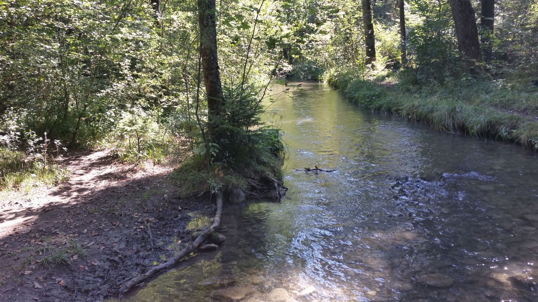 Schön ist es alleweil, auf den Trampelpfaden entlang des Glütschbaches zu spazieren. Zwischendurch ist natürlich auch ein kleines Bad für Hunde aller Art gestattet, oder Stöckchen fischen und was