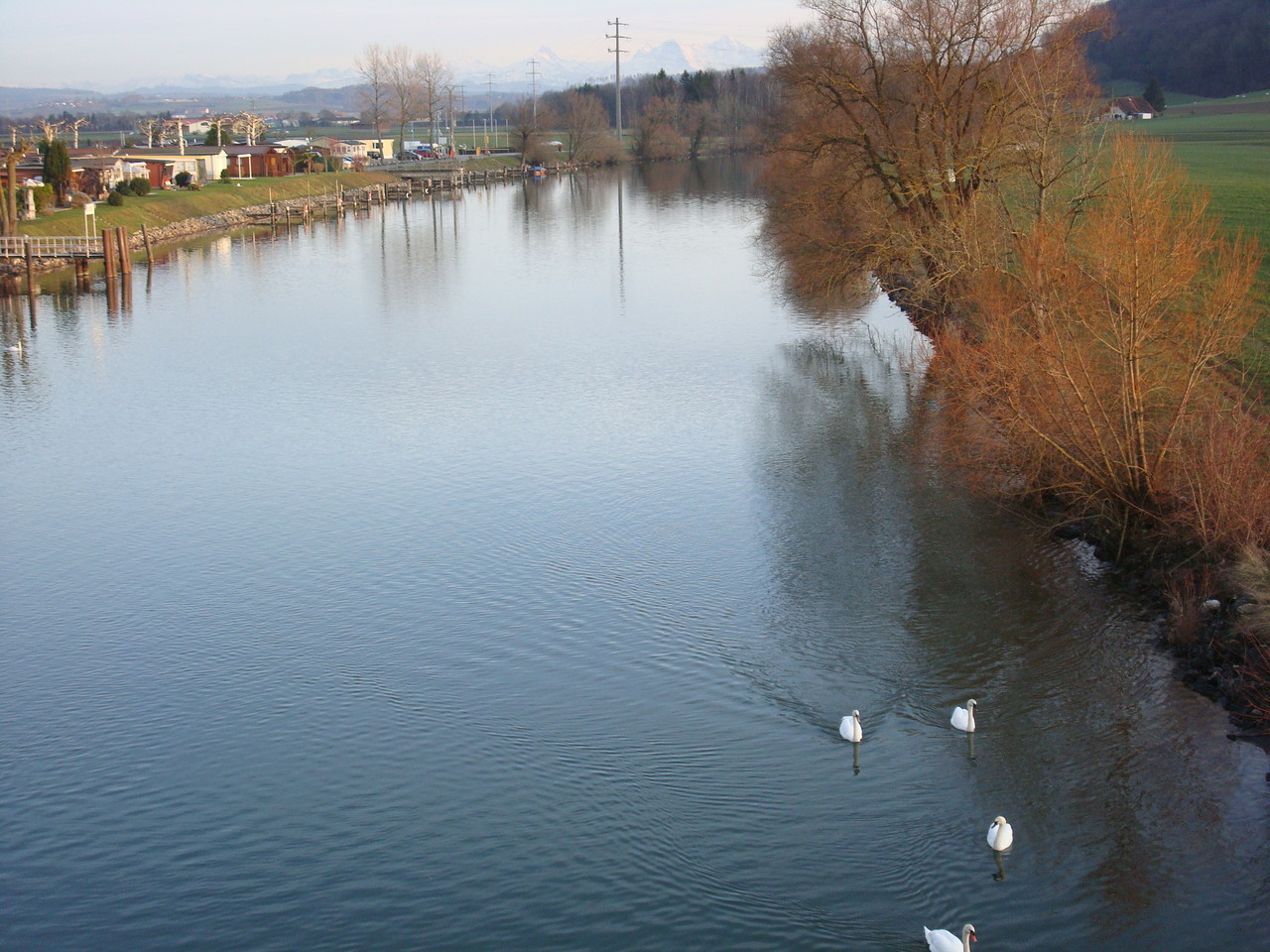 Jetzt wurde es noch ganz abenteuerlich. Den Bahnhof hatten wir zwar bald vor Augen, nur wie dahin gelangen. Eine mit Gittern abgeschränkte Schnellstrasse und ein weiterer Kanal hinderten uns daran, auf direktem Weg ans Ziel unserer Wünsche zu gelangen. Nun hiess es also, einen beträchtlichen Umweg zu machen, immer in der Hoffnung, noch vor Einbruch der Dunkelheit am Bahnhof einzutreffen. Dies ist uns dann auch gelungen und kaum waren wir da, ist auch schon unser Zug um 18.43 Uhr eingetroffen, der uns wohlbehalten nach Bern brachte.