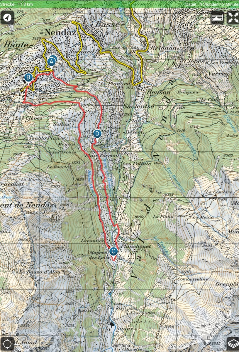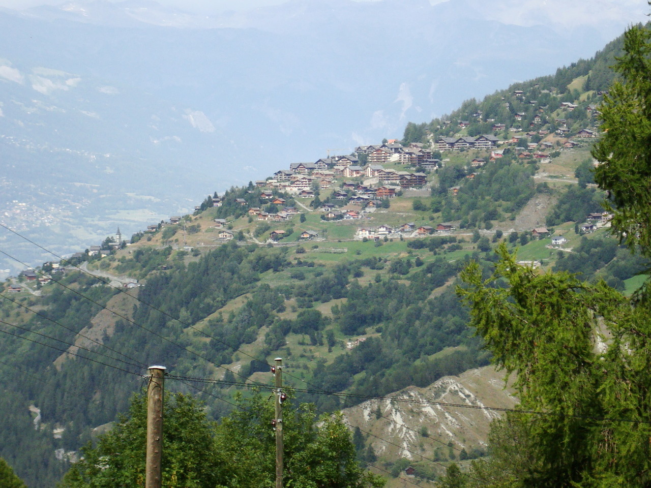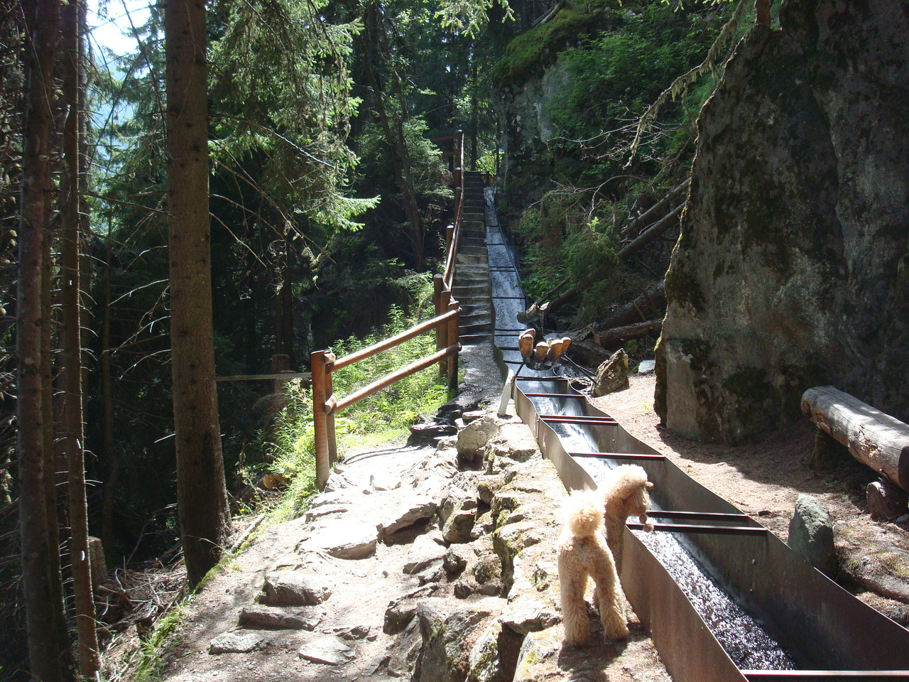 Irgendwann sind wir zurückgekommen nach Haute Nendaz. Leider sind die Fotos nicht mehr vorhanden. Gewandert sind wir bis nach Planchouet den gleichen Weg. Die Fortsetzung folgte entlang der Grand Bisse de Vex nach Veysonnaz. Auch dieser Weg ist ganz toll und immer wieder empfehlenswert. Monty und Holy haben sich speziell darüber gerfreut, Tannenzapfen aus der Bisse zu fischen. An einem warmen Sommertag war diese Abkühlung sehr willkommen.