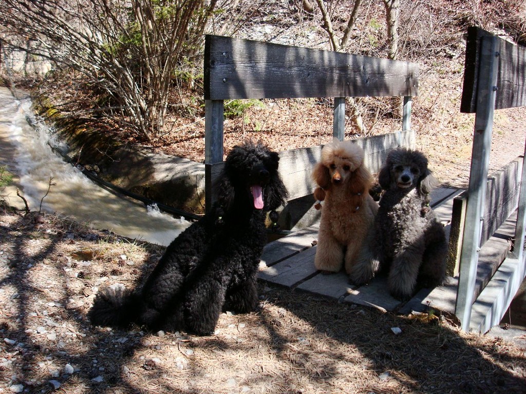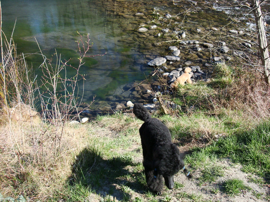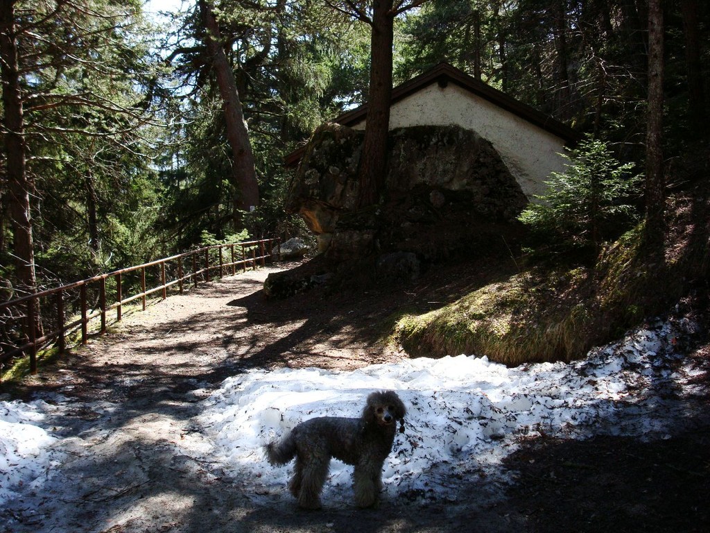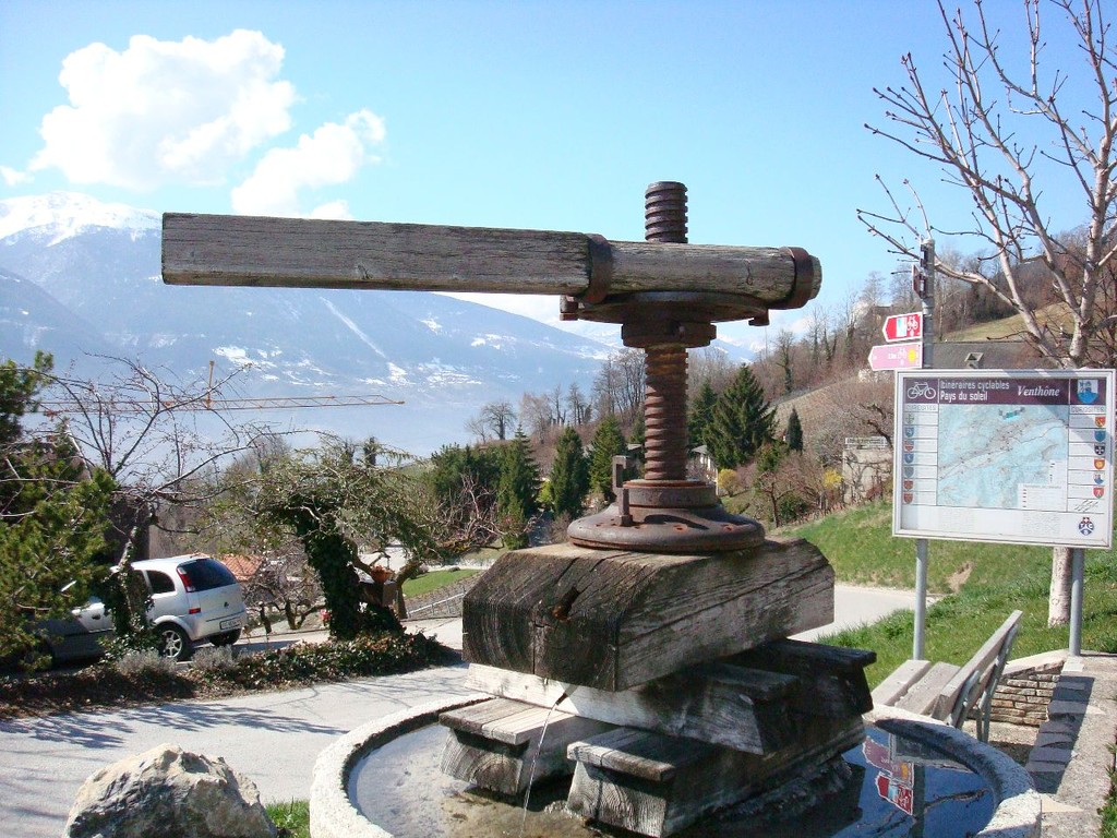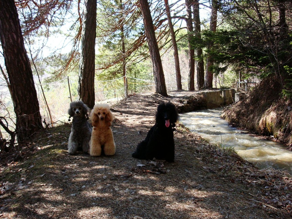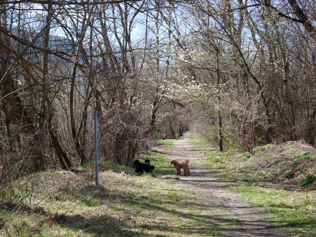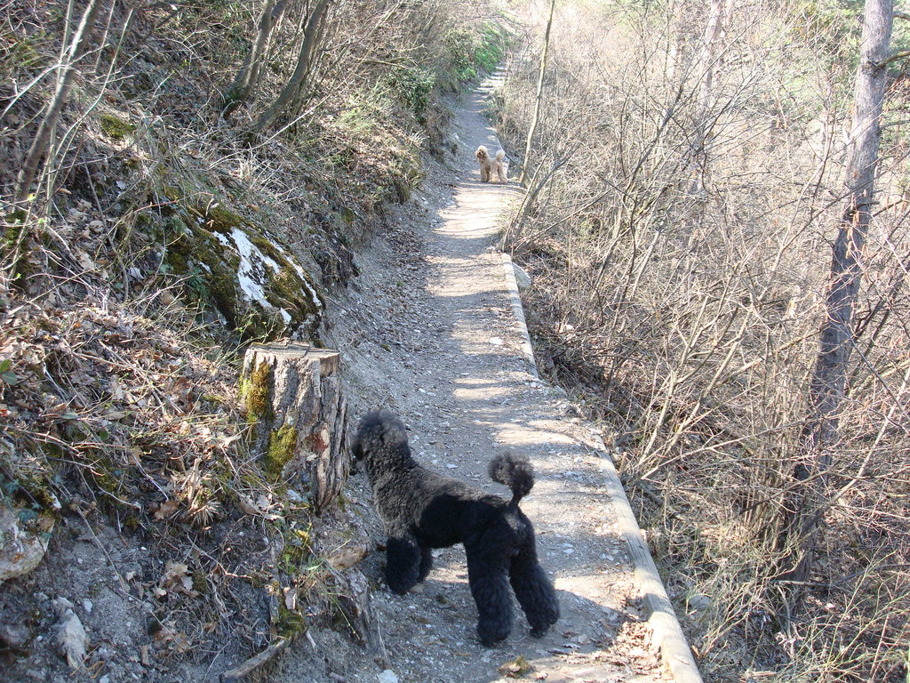 In Sierre angekommen, orientierien wir uns an den gelben Wanderwegweisern vor dem Bahnhof. Dann geht es los geradeaus bis zur Querstrasse und dann nach links, wo wir Ausschau halten nach der Station des Funicolairs. Dieses bringt uns nach Venthône (Abfahrt im Moment .15 und .45 Uhr). Zu Fuss wäre der Aufstieg in 1 Stunde zu bewältigen (810 m ü.M.) Von der Station des Funi wandern wir in zirka 15 Minuten ins Dorf. Der alte Dorfkern mit der Kirche auf einem Felsvorsprung ist sehenswert. Gestärkt mit einem Kaffe für mich und Wasser mit Kaffeerahm für meine drei Pudelbegleiter nehmen wir die Wanderung über die "Grosse Wasserleitu von Varen - Bisse Neuf (3 Std.) in Angriff. Da unsere Herzen weit geöffnet und die Augen staunend auf die Gaben der Natur gerichtet sind, brauchen wir immer etwas mehr Zeit. Begleitet werden wir vom Gesang der Vögel, die voller Lebensfreude ihre Frühlingslieder in die laue, sonnengeschwängerte Luft schmettern. Hin und wieder rauscht ein Bergbach talwärts und trägt unsere Gedanken mit sich fort in weite Fernen.