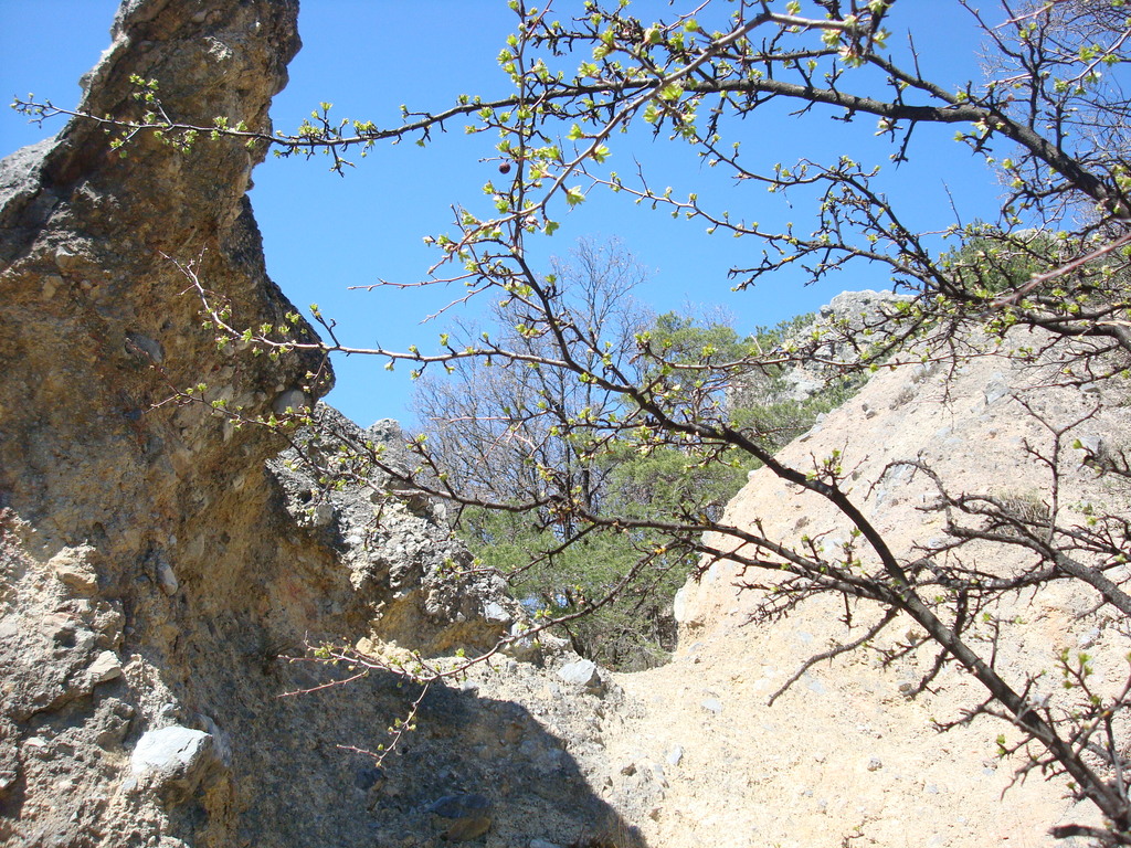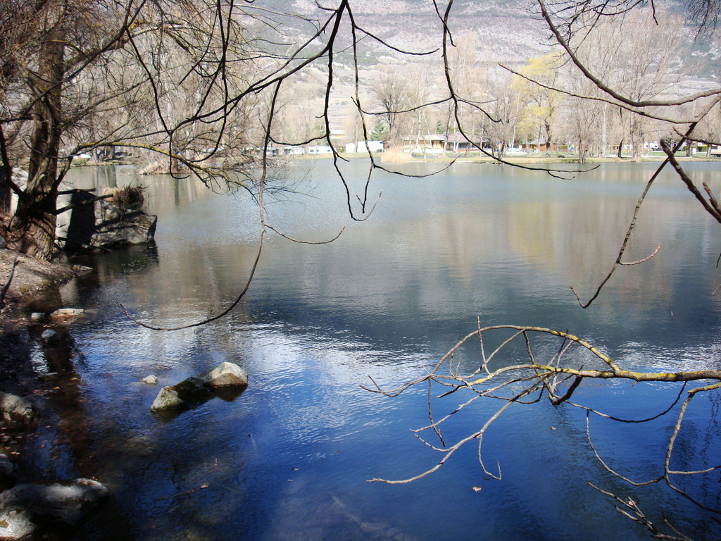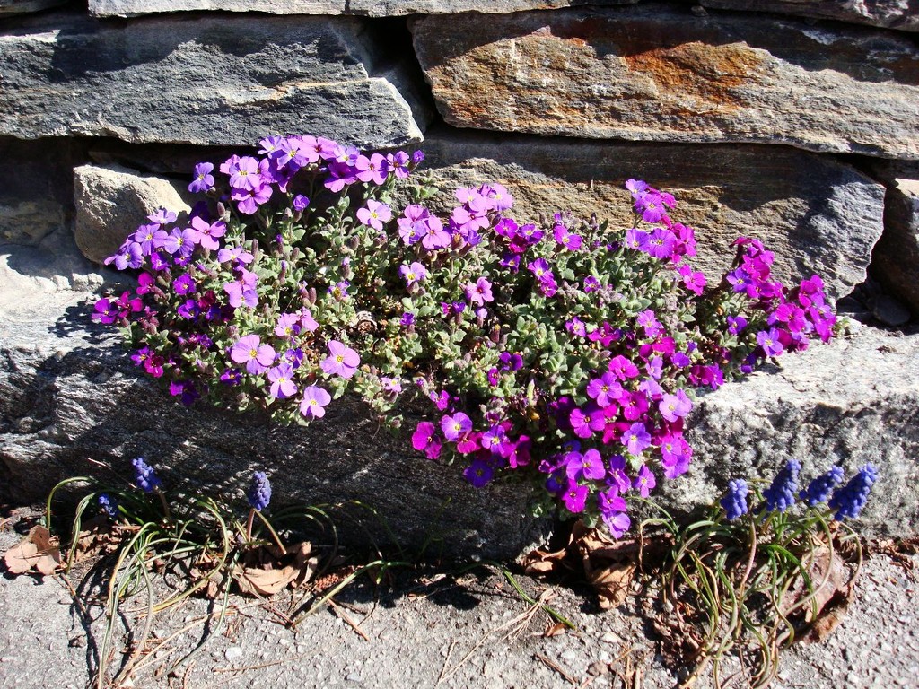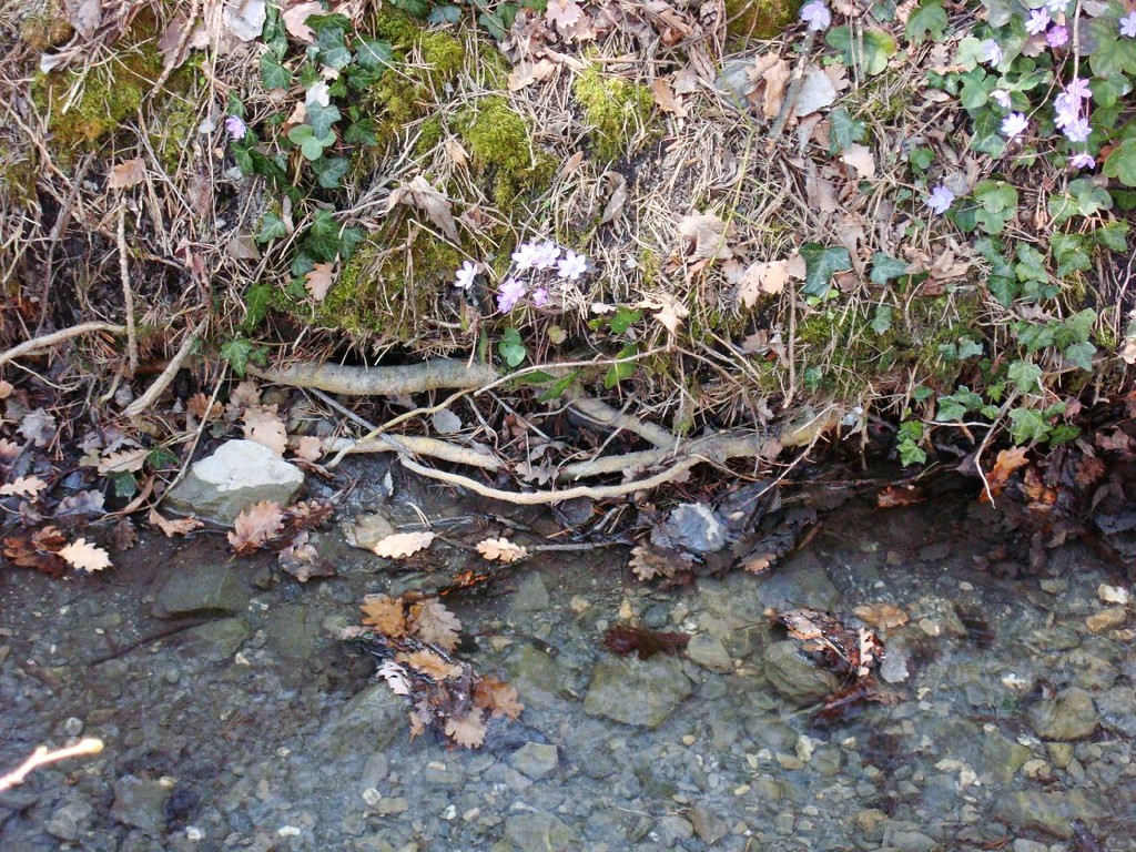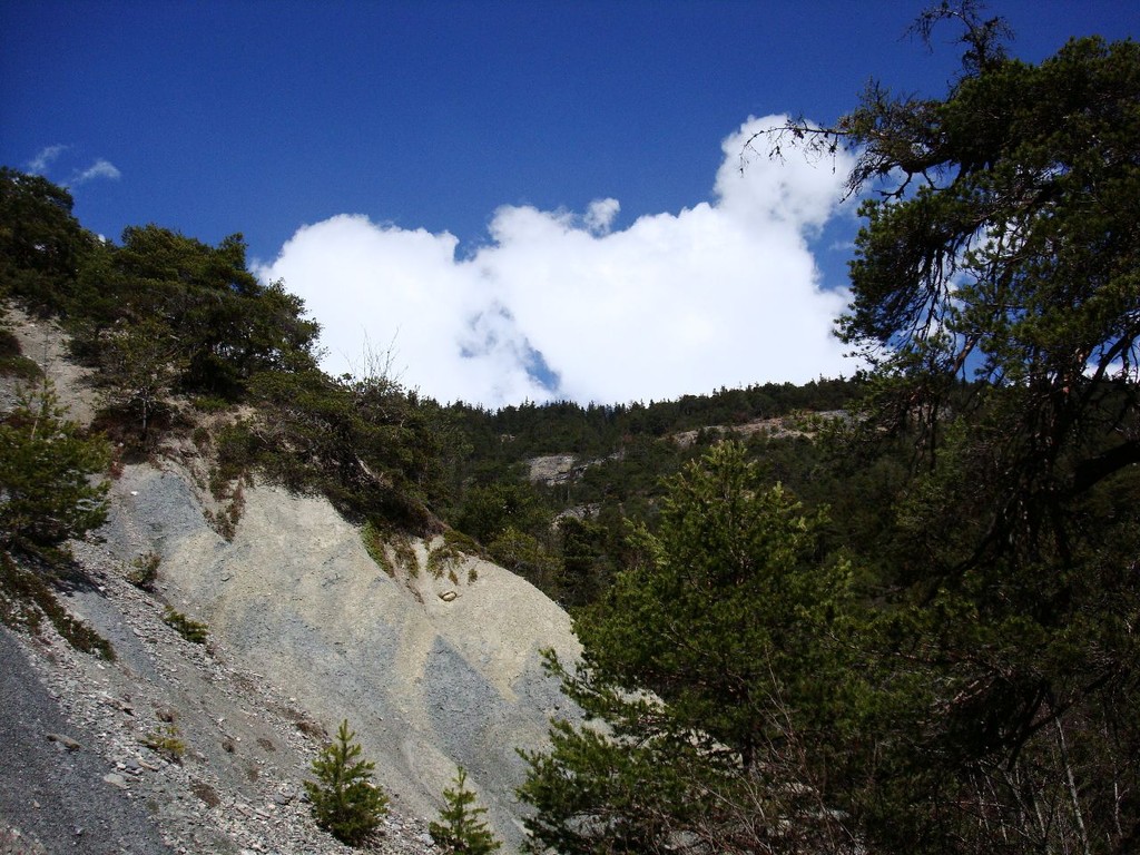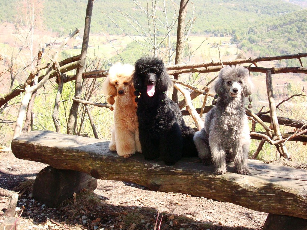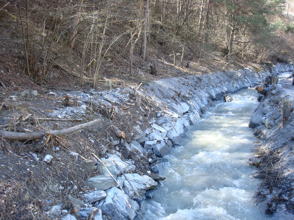 In Sierre angekommen, orientierien wir uns an den gelben Wanderwegweisern vor dem Bahnhof. Dann geht es los geradeaus bis zur Querstrasse und dann nach links, wo wir Ausschau halten nach der Station des Funicolairs. Dieses bringt uns nach Venthône (Abfahrt im Moment .15 und .45 Uhr). Zu Fuss wäre der Aufstieg in 1 Stunde zu bewältigen (810 m ü.M.) Von der Station des Funi wandern wir in zirka 15 Minuten ins Dorf. Der alte Dorfkern mit der Kirche auf einem Felsvorsprung ist sehenswert. Gestärkt mit einem Kaffe für mich und Wasser mit Kaffeerahm für meine drei Pudelbegleiter nehmen wir die Wanderung über die "Grosse Wasserleitu von Varen - Bisse Neuf (3 Std.) in Angriff. Da unsere Herzen weit geöffnet und die Augen staunend auf die Gaben der Natur gerichtet sind, brauchen wir immer etwas mehr Zeit. Begleitet werden wir vom Gesang der Vögel, die voller Lebensfreude ihre Frühlingslieder in die laue, sonnengeschwängerte Luft schmettern. Hin und wieder rauscht ein Bergbach talwärts und trägt unsere Gedanken mit sich fort in weite Fernen.
