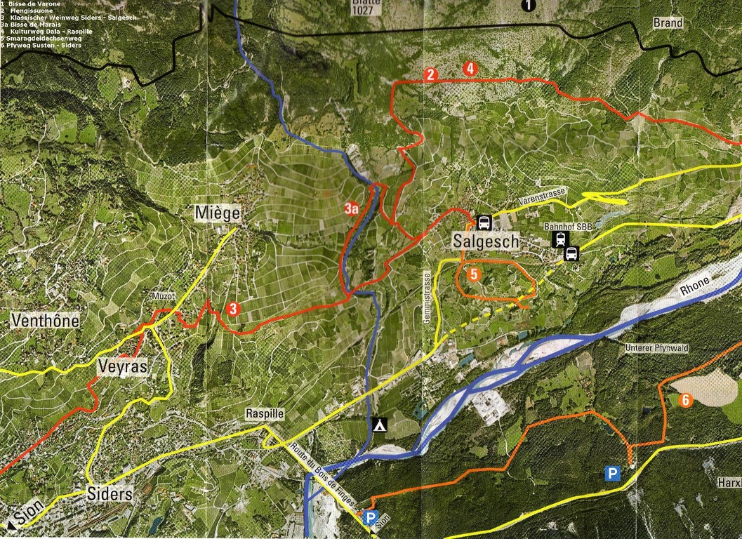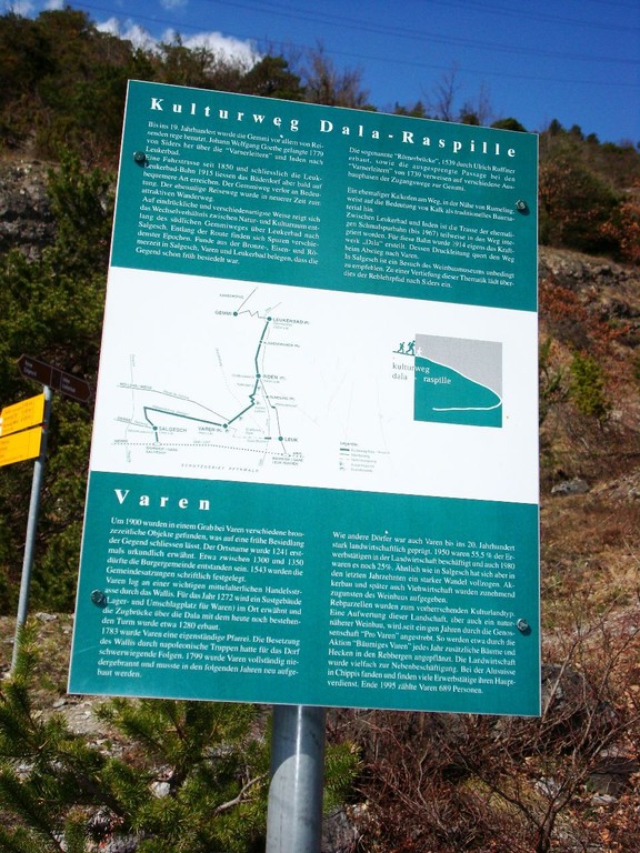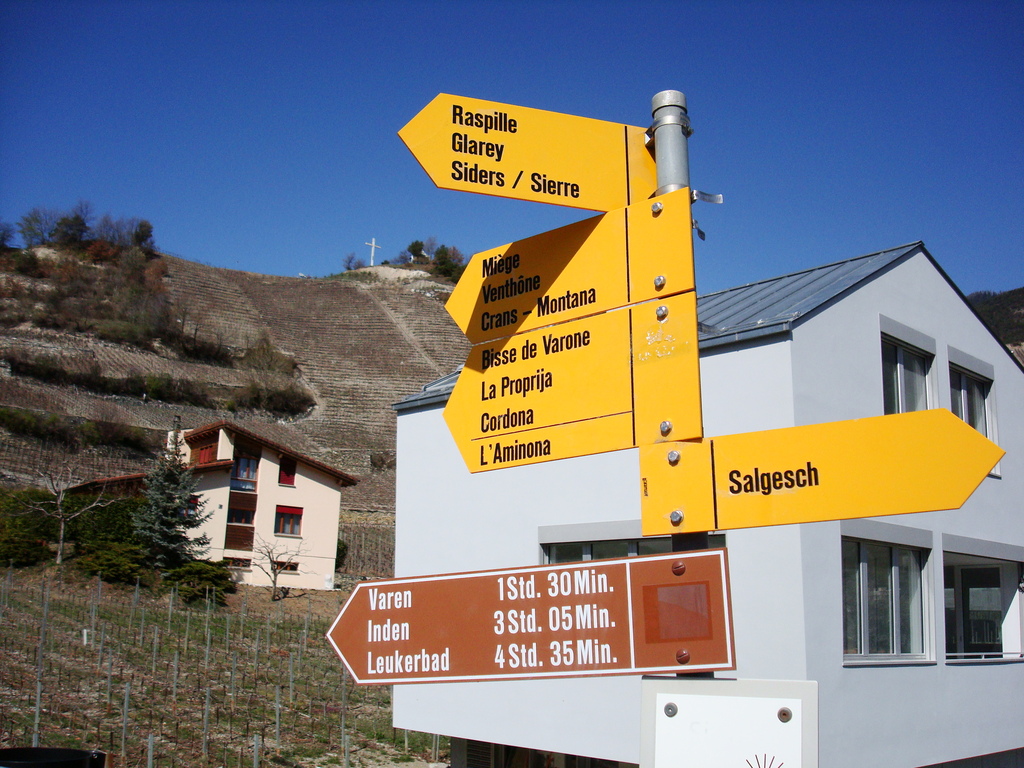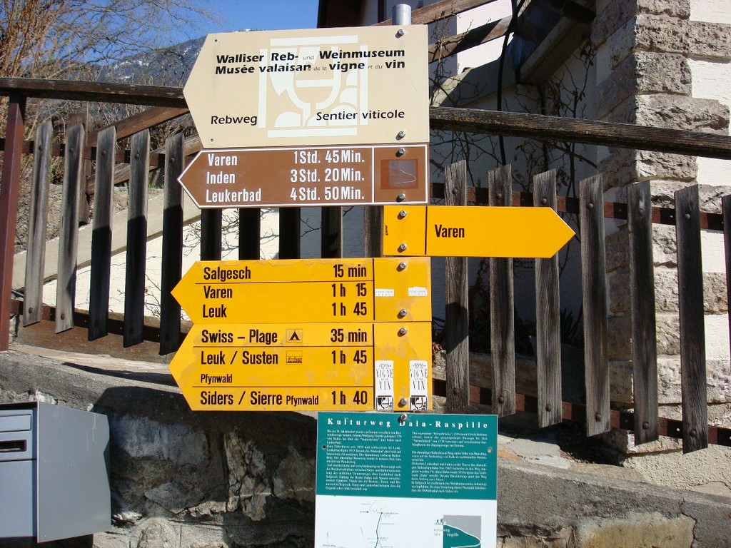 Von Varen geht es mit dem Postauto nach Leuk oder Salgesch (Verbindungen nur alle 1 bis 2 Stunden)