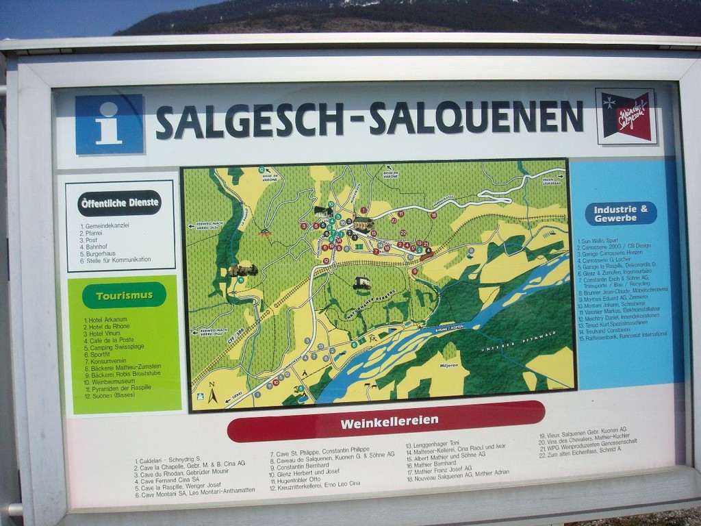 Nach dem zweiten Weltkrieg begann der Wandel vom damaligen Bauerndorf zum gegenwärtigen Weindorf. 203 Hektaren Rebberg und über vierzig Weinbetriebe prägen heute den salgescher Alltag. Als Gemeindewappen trägt das 1200-Seelen-Dorf das Kreuz der Johanniter. Die Glaubensbrüder liessen sich im 13. Jahrhundert in Salgesch nieder, um im Sinne des Ordens eine Herberge für Pilger und Reisende ein zu richten. Ob Johanniter, die während rund 400 Jahren in Salgesch verweilten, den Standort des guten Weines wegen gewählt haben, ist zwar urkundlich nicht belegt, doch höchst wahrscheinlich.