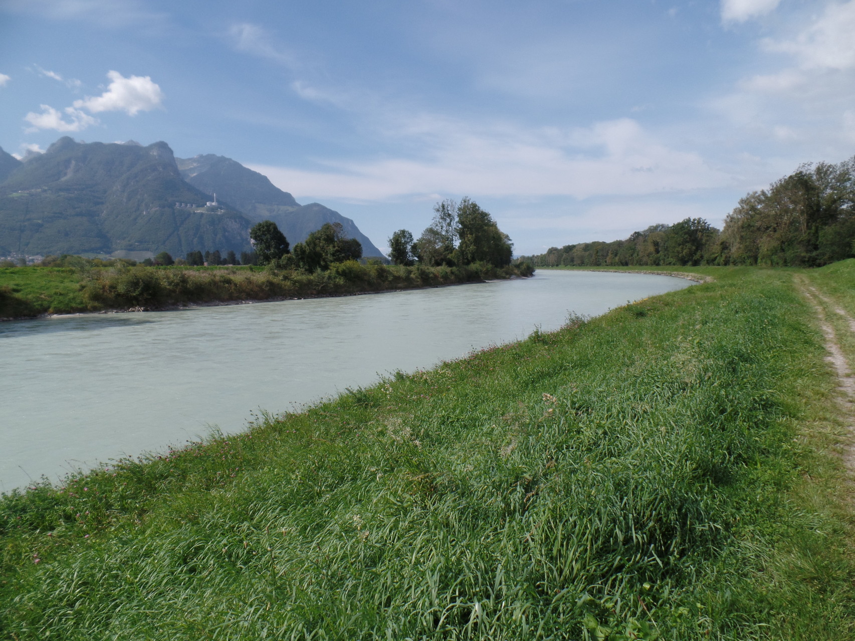 Ein Tag im Wallis ist immer wieder schön. In Aigle angekommen, suchen wir uns ein Plätzchen fürs Mittagessen. Gesucht, gefunden und gut gespeist. Wohlgemut machen wir uns auf zum Stadtrundgang, da wir Aigle überhaupt nicht kennen. Wie überall gibt es auch hier hübsche, lauschige Winkel. Bald suchen wir den Weg Richtung Rhône, den wir Wanderplaner sei's gedankt, auch gut finden. Nun folgt der Weg also ein gutes Stück dem "Torrent d'Yvorne" der schlussendlich in die Rhône mündet. Entlang des langen Flusses, der das Wallis durchfliesst, lässt es sich gut wandern. Es gibt so viel Schönes zu bestaunen, dass darob die Zeit vergessen wird. Bei einer Verzweigung entschliessen wir uns, das Örtchen Chessel in Augenschein zu nehmen, mit dem wir früher schon eher unfreiwillig Bekanntschaft machten. So bei Tageslicht und ohne Zeitdruck lässt sich feststellen, dass das Dorf ganz hübsch ist. Auf Anfrage erklärt uns eine Einwohnerin, dass demnächst ein Bus Richtung Villeneuve eintreffen werden. Wir steigen ein und fahren bis nach Noville, wo wir im Restaurant "de l'Etoile" ein verspätetes Mittagessen geniessen können. Von Noville wandern wir anschliessend weiter nach Villeneuve.